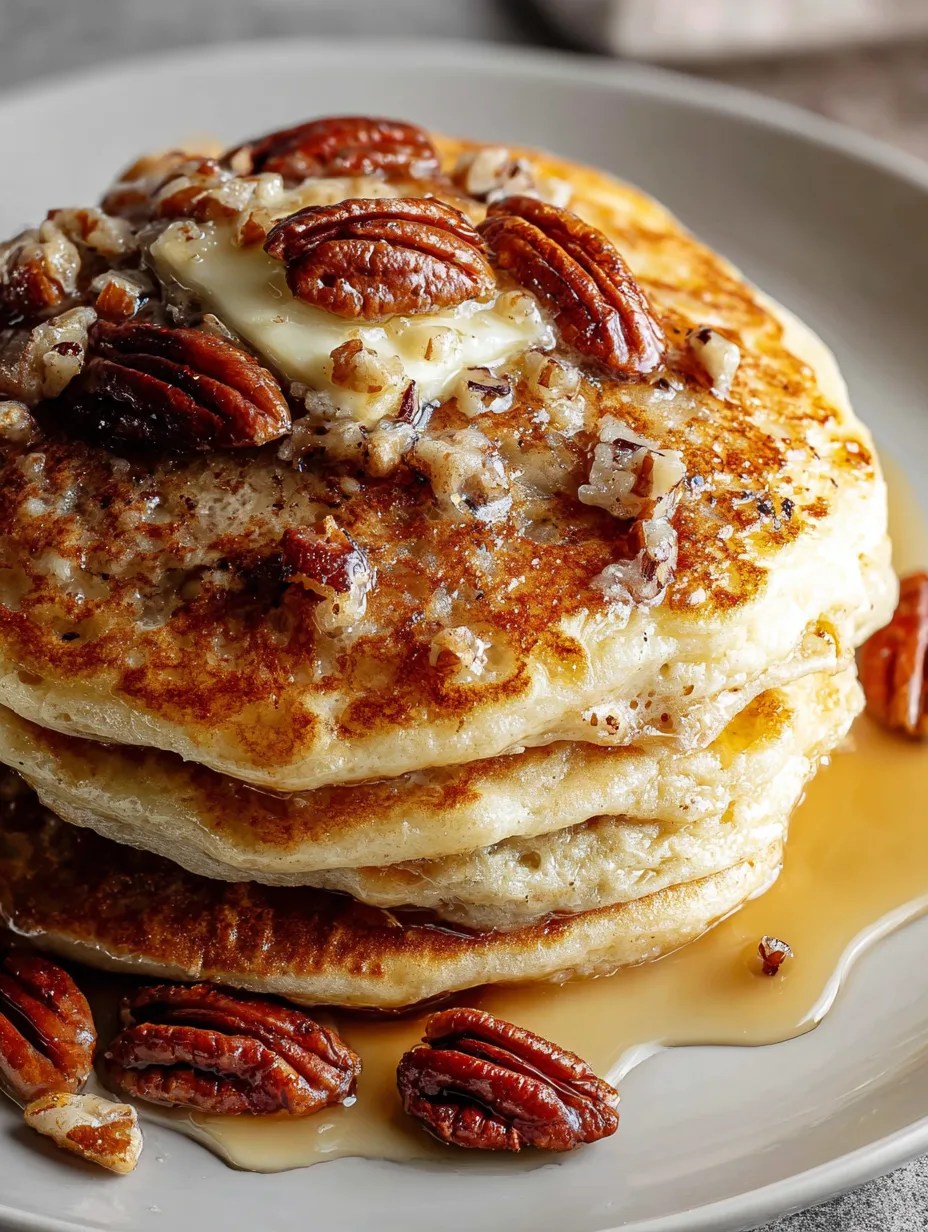 Start your morning with fluffy pancakes packed with buttery pecans and cozy flavor. This breakfast feels indulgent but comes together easier than you think.