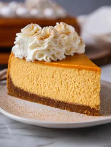 Third, bake low and slow. A steady 325°F (163°C) ensures even cooking and prevents browning too quickly. If you want a restaurant-style pumpkin cheesecake, allow it to cool gradually inside the oven with the door slightly open. This step stabilizes the structure and keeps the top smooth and glossy.