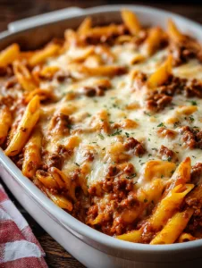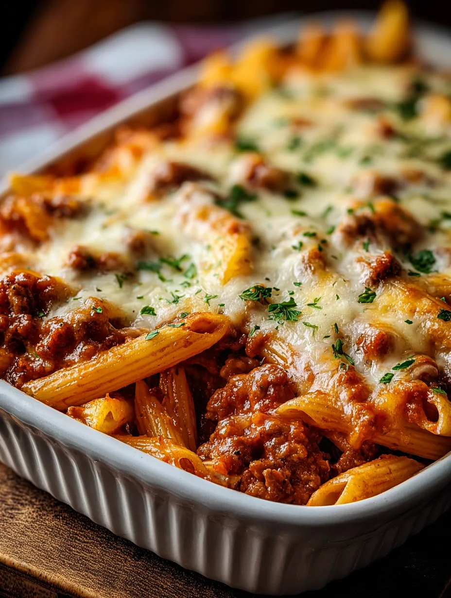This Cheesy Baked Mostaccioli with Meat Sauce Recipe stands out for its irresistible textures and rich, hearty flavors. The tender, slightly firm pasta perfectly complements the robust, aromatic meat sauce infused with garlic, onions, and Italian herbs. The top layer of gooey, golden mozzarella and parmesan adds a creamy, indulgent finish that melts in your mouth. It’s easy to prepare, yet looks and tastes like a gourmet meal. This recipe balances comfort with flavor sophistication, making it ideal for family dinners, potlucks, or even meal prep. You’ll love the satisfying contrast of cheesy, saucy, and perfectly baked pasta in every bite.