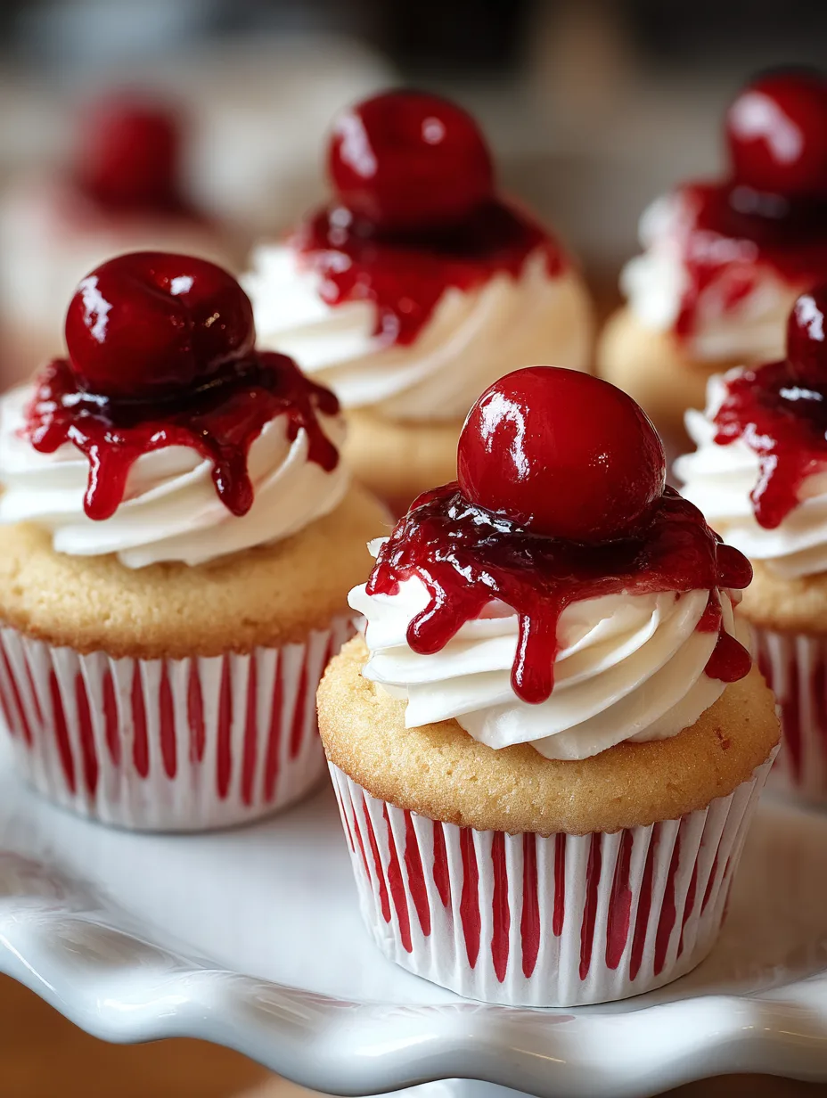 Once fully cooled, top each cupcake with a spoonful of cherry pie filling. Chill for at least 30 minutes before serving for the best flavor and texture.