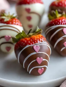 Store Chocolate Covered Strawberries for Valentine’s Day in a single layer in an airtight container. Keep them in the refrigerator for up to 2 days. Avoid long storage, as strawberries release moisture over time. For serving, bring them to room temperature for 10–15 minutes to enhance flavor. Present them on a decorative tray, in cupcake liners, or paired with chocolate truffles for a luxurious display. These strawberries also pair beautifully with soft cheeses or as part of a Valentine’s Day dessert board.