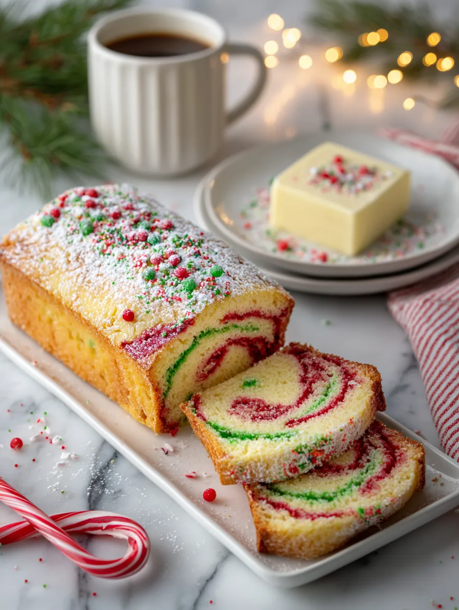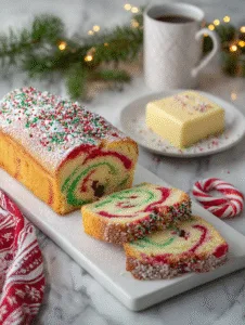 Festive Appeal: Brightly colored sprinkles create a cheerful, holiday-ready loaf.