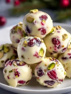 These ingredients create a harmonious blend of nutty, sweet, and tart flavors. The pistachios provide a buttery crunch, while the cranberries add tangy bursts in each bite. Rolled oats give structure and chewiness, and the almond butter binds everything together naturally. Honey or maple syrup adds natural sweetness, complemented by a touch of vanilla. A pinch of salt enhances all flavors, balancing the sweetness and highlighting the nuttiness. Optional coatings like shredded coconut or white chocolate make the balls more festive and indulgent.