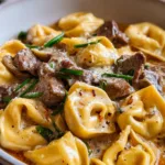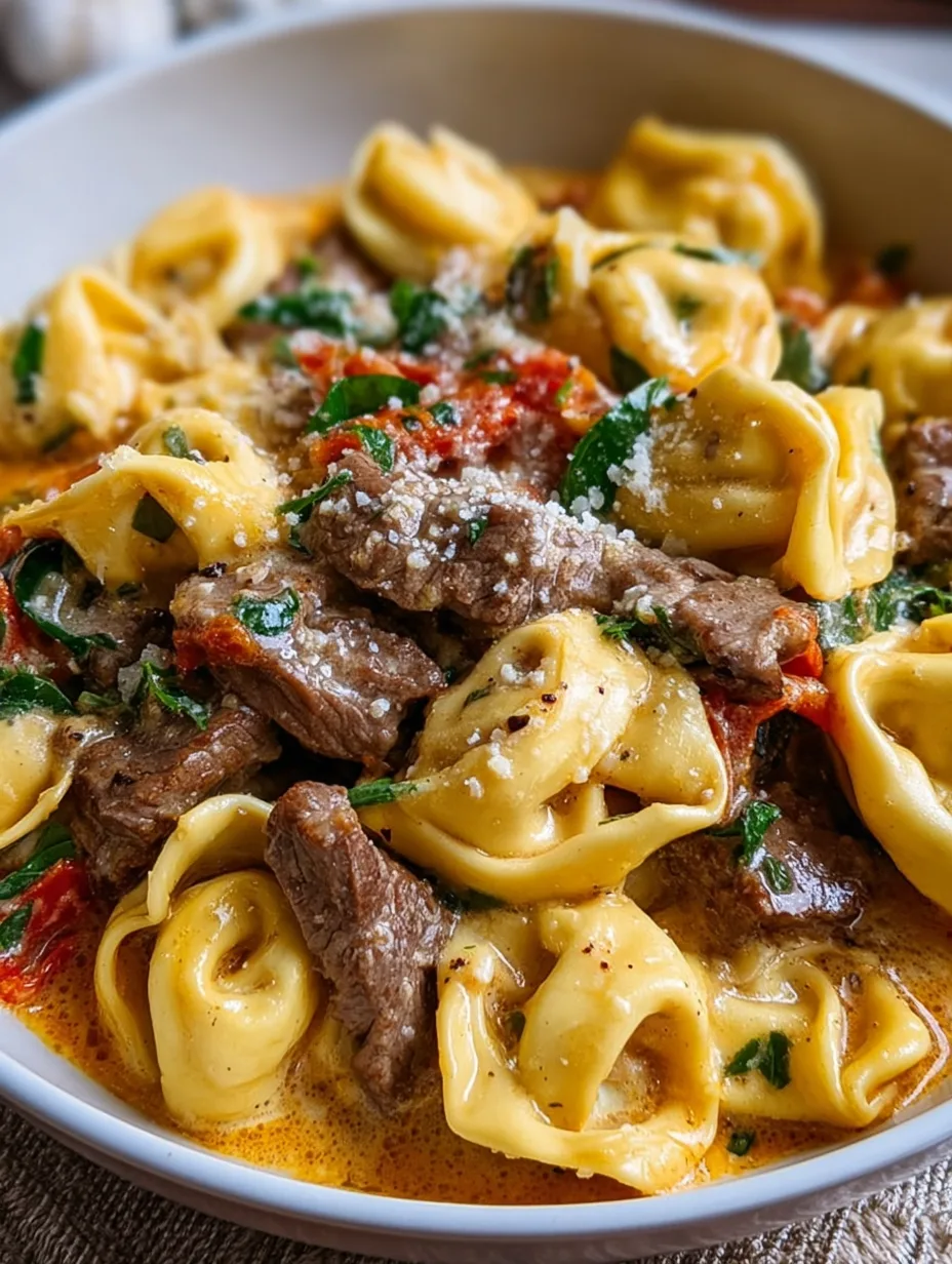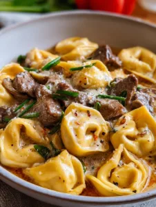 Indulge in creamy, cheesy comfort with this Creamy Cheesesteak Tortellini. Tender steak, melty cheese, and savory veggies make every bite unforgettable.