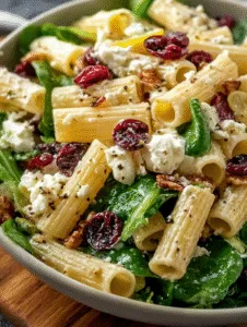 30 minutes helps flavors deepen and the texture become more cohesive—a key secret for a truly Creamy Feta and Cranberry Rigatoni Salad Tossed in Zesty Lemon Vinaigrette Dressing.