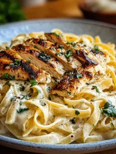 Indulge in the ultimate comfort food with Creamy Grilled Chicken Alfredo Pasta, a dish that elevates your weeknight dinners into a gourmet experience. Imagine tender grilled chicken slices, perfectly seasoned, resting atop a bed of fettuccine enveloped in a luxurious, garlicky Alfredo sauce. This dish isn’t just a meal—it’s a culinary hug that brings warmth, flavor, and satisfaction to your table. With every bite, you’ll taste the creamy Parmesan sauce mingling with the smokiness of grilled chicken, creating an unforgettable dining experience. Whether you’re cooking for your family or impressing guests, this recipe guarantees rich, indulgent flavor with minimal effort.