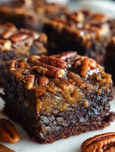 Finally, allow the brownies to cool completely before slicing. The pecan pie layer needs time to set. For extra clean cuts, chill the pan for 30 minutes, then slice with a sharp knife wiped clean between cuts.