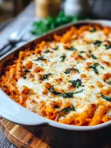 Second, cook the pasta slightly under al dente. Pasta continues cooking in the oven, and this technique prevents it from becoming overly soft during baking.