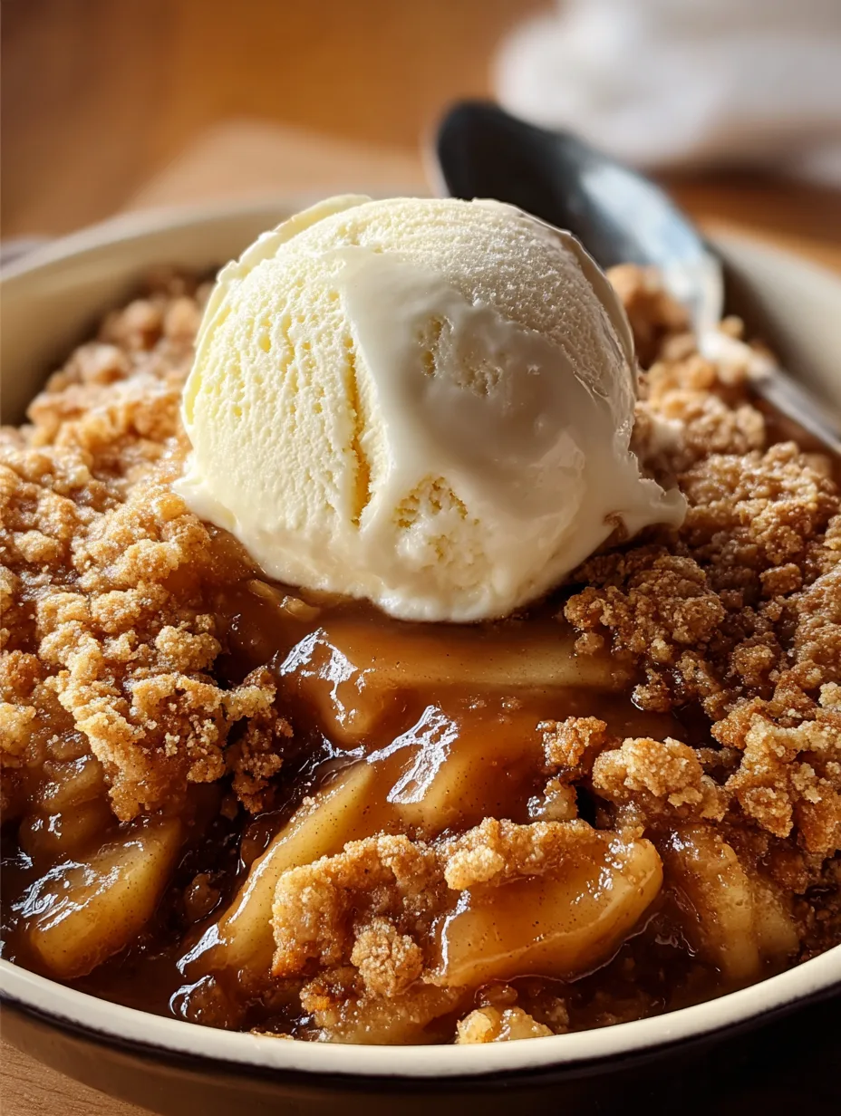 Delicious Warm Caramel Apple Cobbler with Vanilla Scoop