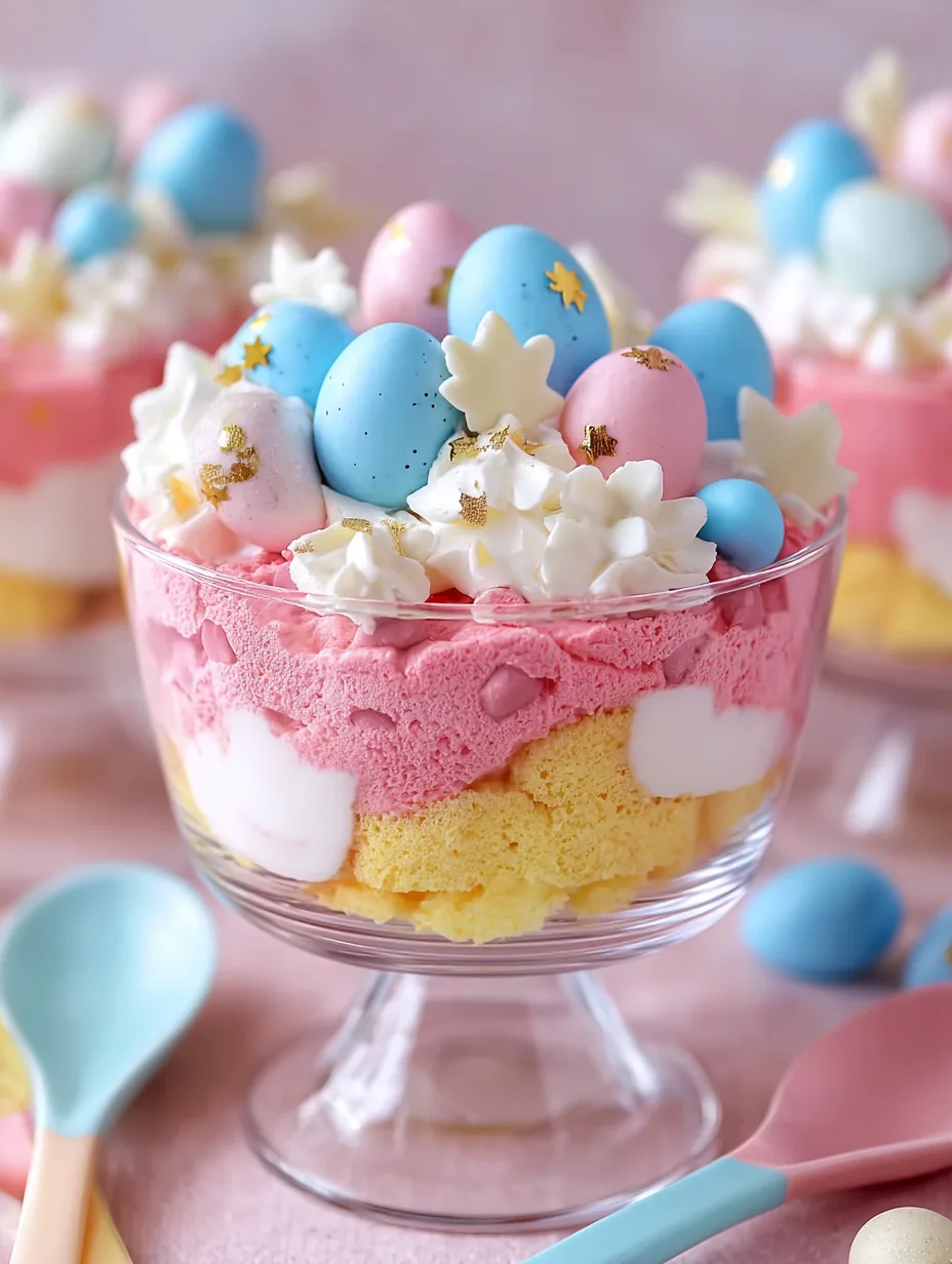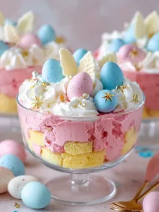Decorate with Easter sprinkles, raspberries, or pastel candies. Chill the trifle for at least 2 hours before serving to allow flavors to meld beautifully.