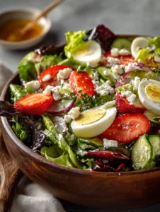 Celebrate spring with this vibrant Easter Salad Recipe, a refreshing mix of crisp greens, colorful vegetables, and creamy dressing. Perfect for holiday gatherings or a light family meal, this salad is a feast for both the eyes and the taste buds. The combination of textures—from crunchy radishes to tender boiled eggs—makes every bite exciting. You’ll learn how to create a visually stunning, flavorful salad that feels as festive as Easter itself while remaining simple enough for any home cook.