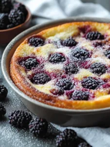 First, warm your ingredients. Room-temperature eggs and milk blend smoothly, preventing lumps and helping the batter set evenly. Second, butter the baking dish generously and dust it lightly with sugar. This trick prevents sticking and creates a subtle caramelized edge that tastes incredible. Third, don’t overbake. Pull the clafoutis when the center still jiggles slightly; carryover heat will finish the job. Overbaking dries the custard and dulls the blackberry flavor. For the best Easy Homemade Blackberry Clafoutis, rest the baked dish for 10 minutes before slicing so the custard relaxes and cuts cleanly.