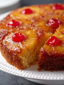 The charm of this Easy Pineapple Upside Down Cake lies in its perfect balance of textures. The pineapple slices and maraschino cherries create a juicy, slightly tangy topping that contrasts beautifully with the buttery, fluffy cake underneath. Caramelized brown sugar enhances every bite, adding a warm sweetness that’s irresistible. This recipe is simple enough for beginner bakers but delivers a bakery-quality result that impresses every time. Additionally, it’s versatile: serve it warm with a scoop of ice cream, or let it cool for a more traditional dessert. Its bright, tropical flavor and gorgeous presentation make it ideal for birthdays, brunches, or holiday gatherings, making everyone feel special with minimal effort.