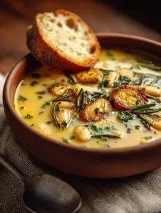 The flavor is where this soup truly shines. Garlic turns mellow and fragrant as it cooks, while rosemary infuses every bite with warm, woodsy notes. White beans create a creamy, luxurious texture, even without adding heavy cream. The contrast between the silky broth and tender beans makes every spoonful satisfying.