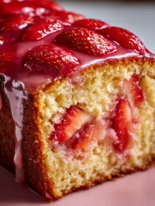Sweet, buttery, and bursting with fresh strawberry flavor, this cake feels like summer in every bite. One slice is never enough once you taste that glossy strawberry glaze.