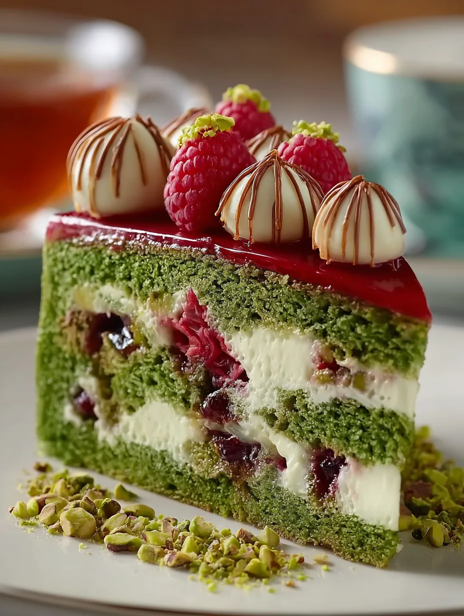Layered Version: Alternate pistachio and raspberry layers for dramatic effect.
