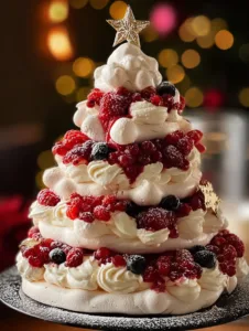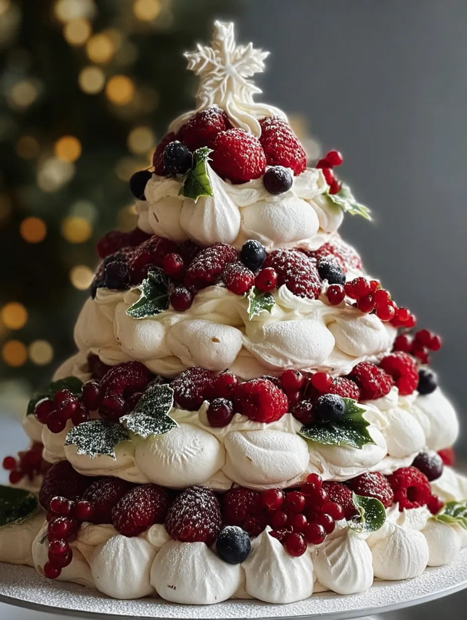 Turn your Christmas dessert into a masterpiece with this Festive English Pavlova Christmas Tree. It is light, dramatic, and guaranteed to wow your holiday guests.