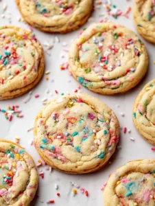 Keyword variations naturally related to this recipe include chewy sprinkle sugar cookies, birthday cake cookies, and soft vanilla sprinkle cookies.