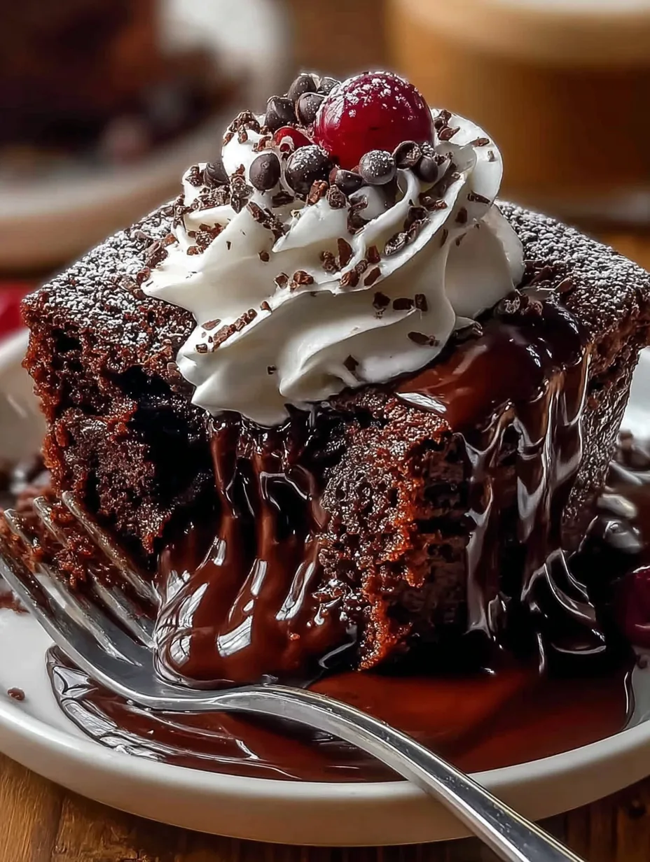 Another reason this recipe wins hearts is its dramatic presentation. When you scoop into it, thick chocolate sauce pools around the cake, creating a dessert that looks impressive but requires minimal effort. Whether you serve it at family dinners or holiday gatherings, it always steals the spotlight.