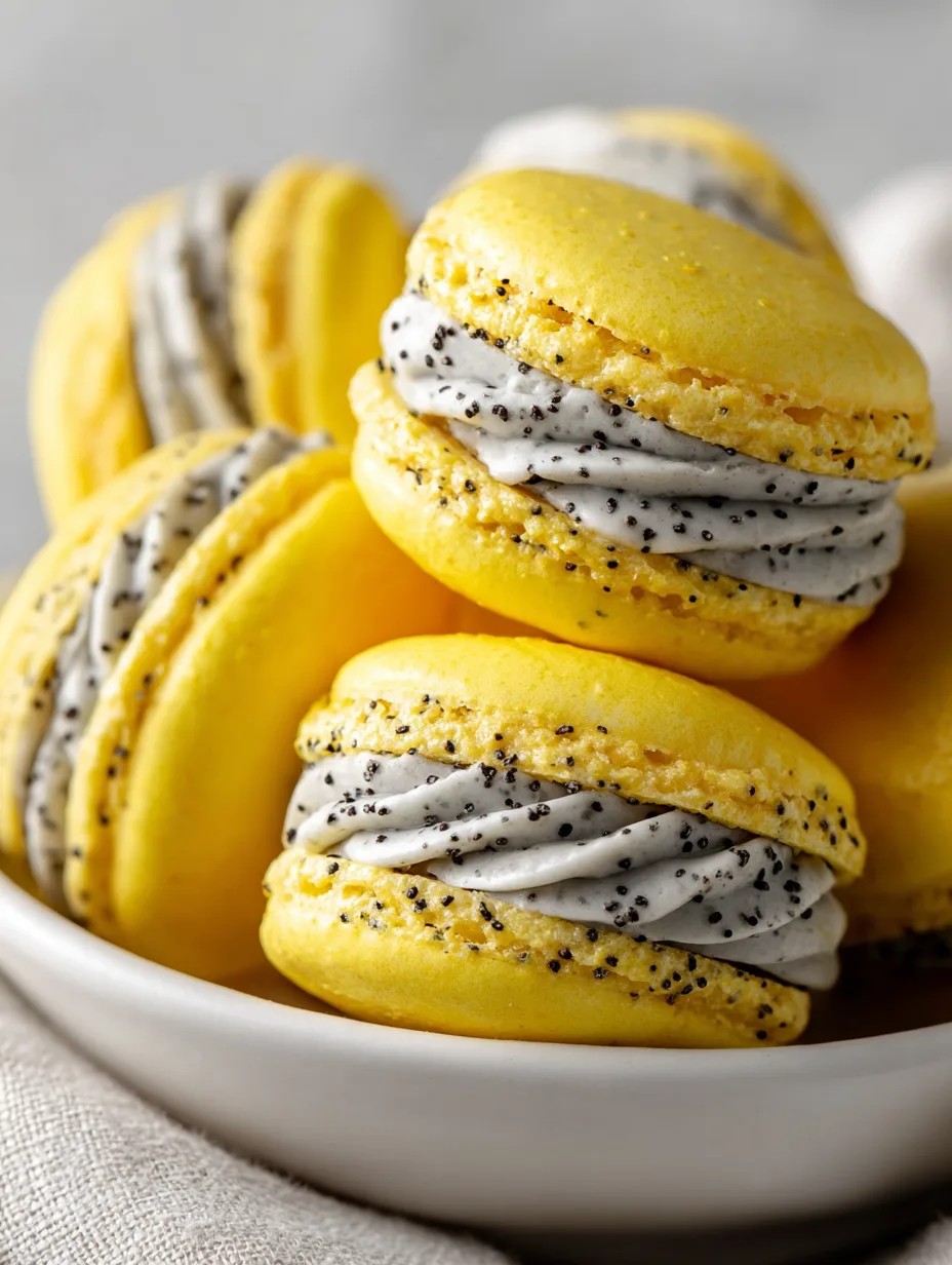 Fall in love with every bite of these bright, elegant macarons filled with silky lemon cream and delicate poppy seed crunch. Perfect for tea parties, gifting, or when you want a bakery-style treat at home.