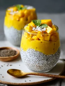 Layer the chia pudding and mango purée in jars or bowls. Start with chia pudding, add mango, and repeat for a visually appealing finish.