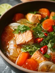 The texture contrasts make it irresistible. Silky salmon meets crisp herbs, soft tomatoes burst into the broth, and fresh lime sharpens the finish. If you enjoy dishes like Vietnamese sweet and sour fish soup or Asian sweet and sour salmon, this modern version elevates those flavors while keeping the soul of the original.