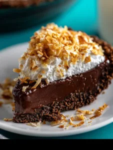Spoon the coconut-pecan topping evenly over the chocolate layer. Refrigerate the pie for at least 4 hours or until fully set. For best results, chill overnight before slicing and serving.