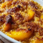 Place the dish in the oven and bake for about 40–45 minutes. The top should turn golden brown while the peach filling bubbles around the edges.