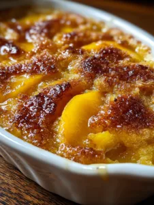 Another reason this dessert stands out lies in its incredible texture contrast. The top layer forms a golden crust that feels crisp at the edges yet soft and tender underneath. Meanwhile, the peaches remain juicy and warm beneath the crust. Each spoonful combines buttery pastry with sweet fruit filling.