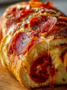 You might also see this recipe referred to as pepperoni pizza bread or stuffed pizza loaf, both of which highlight its pizza-inspired nature.