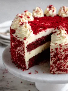 Use a water bath or low oven temperature if baking your cheesecake; for no-bake versions, let it chill undisturbed.Can I make this Red Velvet Cheesecake Cake ahead of time?