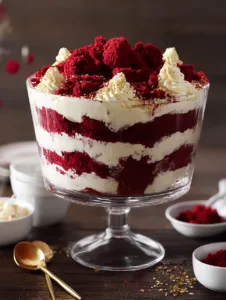 Layered, creamy, and visually stunning, this Red Velvet Cheesecake Trifle is a show-stopping dessert that’s perfect for parties or cozy nights in.
