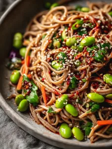 These ingredients are easy to source, with the edamame providing a protein boost and the chili oil offering a vibrant, fragrant punch. Buckwheat soba noodles bring a nutty flavor that complements the heat and crunch, while the combination of sesame oil and soy sauce ensures a savory umami base.