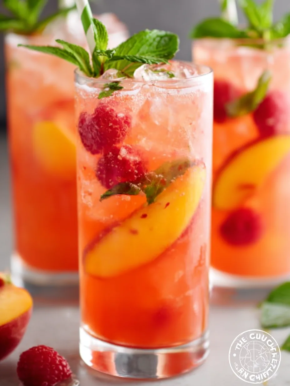 - Optional garnish: fresh mint leaves, peach slices, and whole raspberries