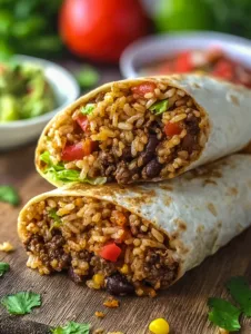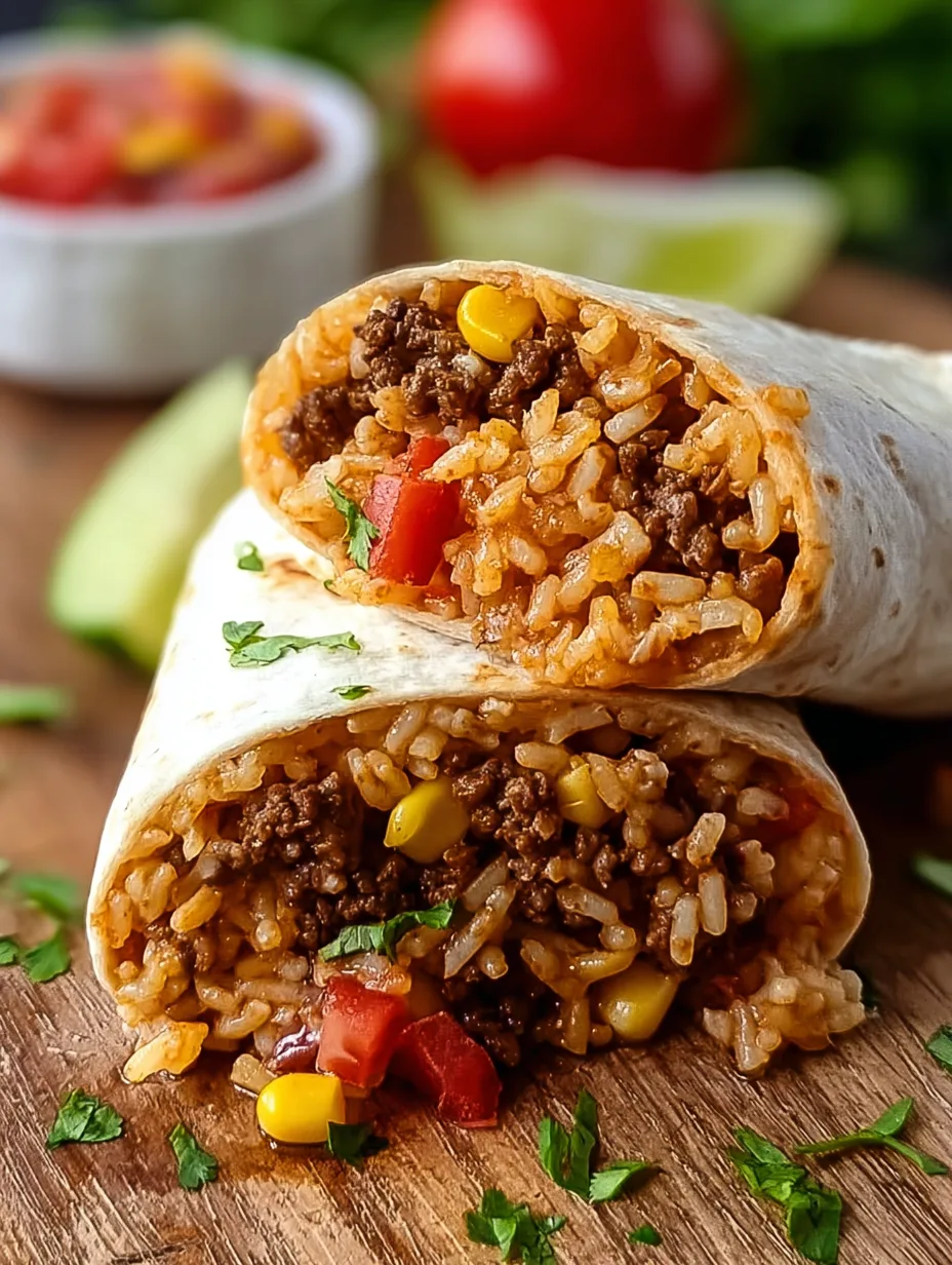Savory 30 Minute Beef and Rice Burritos
