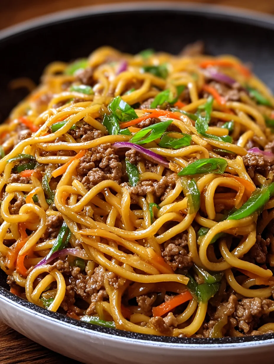 Whip up restaurant-style lo mein in just 25 minutes with savory ground beef and crisp vegetables. This fast, flavorful weeknight dinner is ready before takeout arrives.