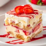 For a kid-friendly twist, use vanilla-flavored milk instead of strawberry syrup. You can also turn this into individual cups for parties or picnics, making it a portable no-bake strawberry tiramisu that looks just as impressive.