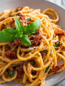Store leftover Sun-Dried Tomato Pasta in an airtight container in the refrigerator for up to 3 days. Reheat gently on the stovetop with a splash of milk or water to revive the sauce. Serve this pasta with a crisp green salad, garlic bread, or roasted vegetables for a complete meal. It also pairs well with grilled chicken or salmon. For entertaining, finish with extra Parmesan and basil right before serving to refresh the flavors.