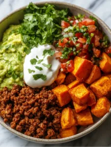 Sprinkle cilantro over everything and squeeze fresh lime juice across the bowl. Add Greek yogurt, shredded cheese, or tortilla strips if desired. Serve immediately and enjoy your flavorful Sweet Potato Taco Bowl while it’s warm and vibrant.
