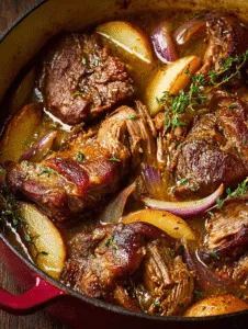 Tasty Apple Cider Braised Pork Shoulder is the definition of cozy fall comfort food — rich, juicy, and infused with sweet apple cider and fresh herbs. Imagine tender pieces of pork slowly cooked in a savory apple-infused broth until they practically melt in your mouth. This Apple Cider Braised Pork Shoulder recipe is the perfect centerpiece for a Sunday dinner, a festive holiday meal, or any time you crave something deeply satisfying and soul-warming.