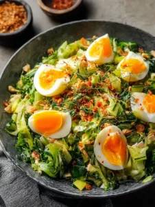Wombok Salad With Eggs is a sensory delight with crisp, tender cabbage leaves, creamy egg yolks, and a bright, tangy dressing. The contrast between crunchy wombok and soft eggs creates a texture your taste buds will crave. Quick to prepare, this salad requires minimal cooking yet delivers maximum flavor, perfect for busy weekdays or elegant entertaining. The fresh, natural flavors make it a lighter alternative to heavier salads without sacrificing taste. Whether you enjoy it as a side dish or a main, this salad keeps well and looks stunning on any table. Its simplicity, freshness, and adaptability make it a kitchen favorite for anyone who loves crisp, wholesome salads.